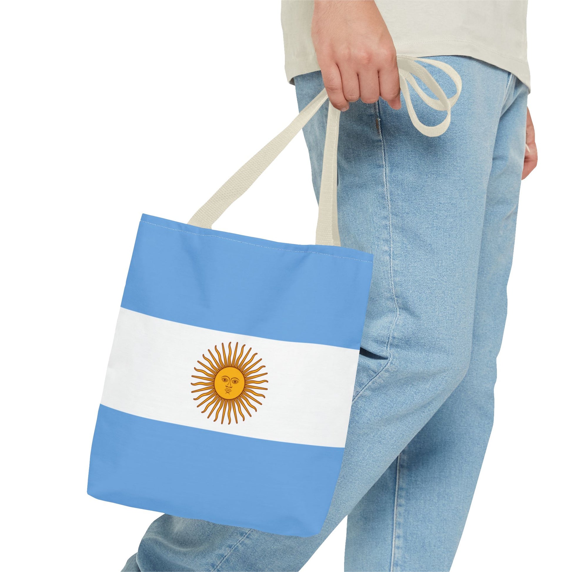 Show your love for Argentina with this vibrant flag tote bag. Perfect for everyday use, whether you're heading to the grocery store or the beach. Ideal for anyone who loves Argentina or wants to show their heritage. Great for Independence Day, National Flag Day, or as a gift for an Argentine friend.